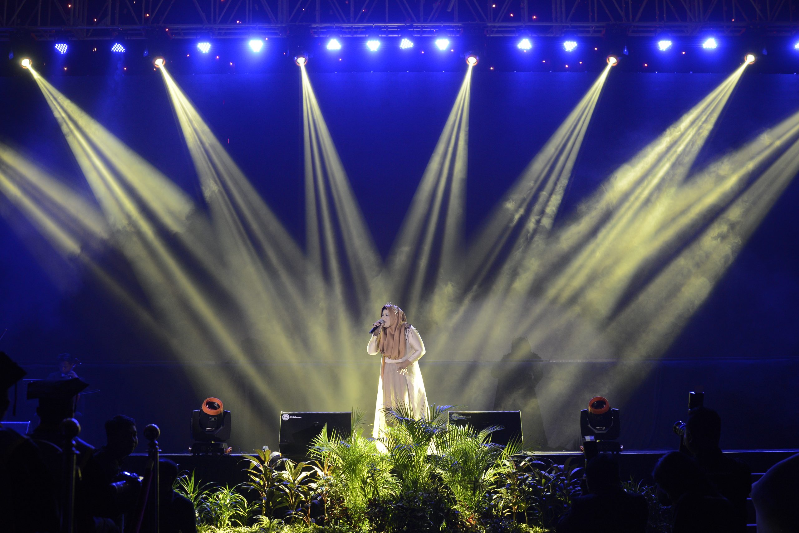para hadirin disuguhi penampilan group band Alkahfinita dipadupadankan dengan tata cahaya panggung yang berwana-warni, permainan asap panggung, grafik video latar pada layar LED, dan sound layaknya gelaran konser musik.