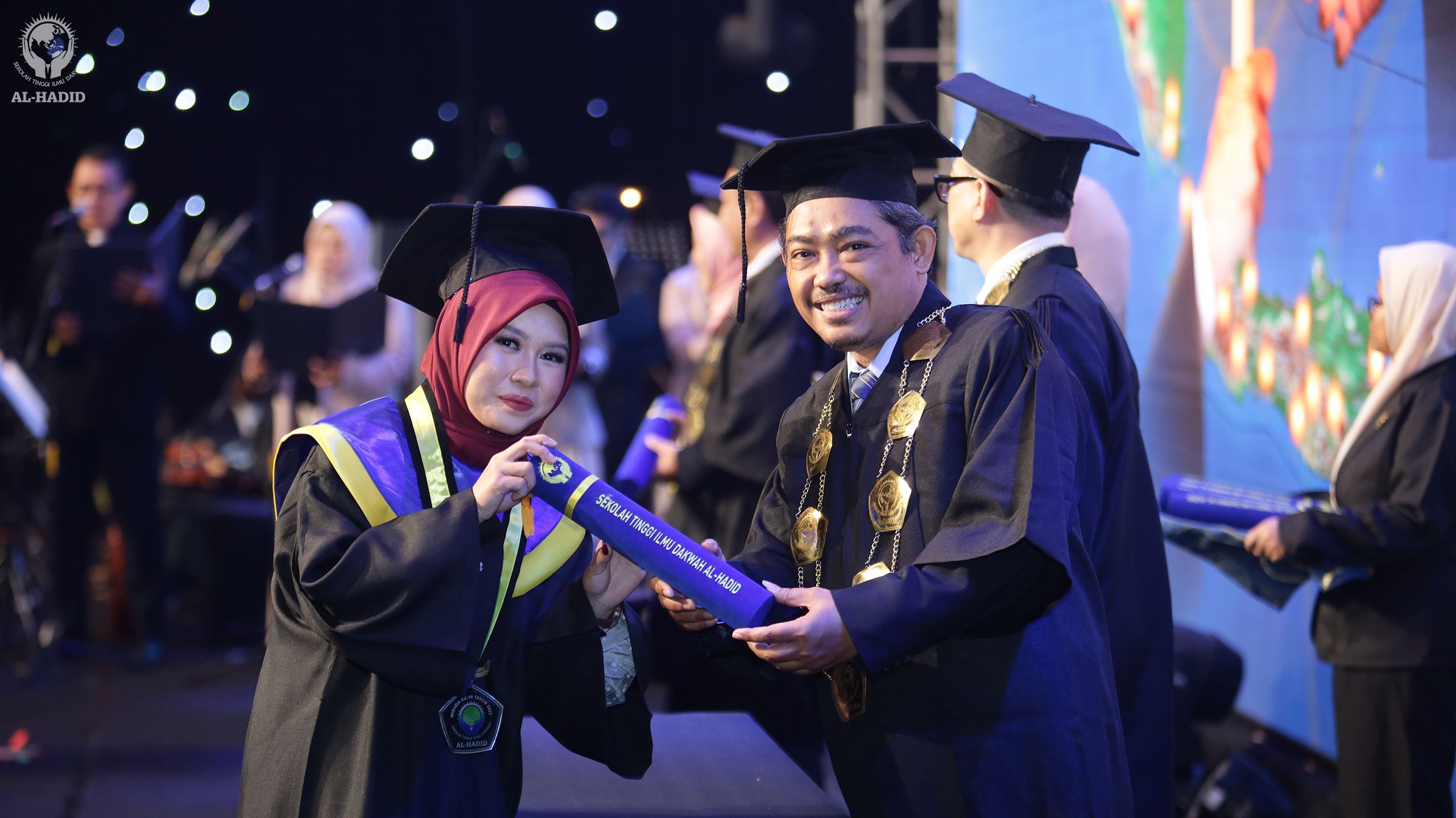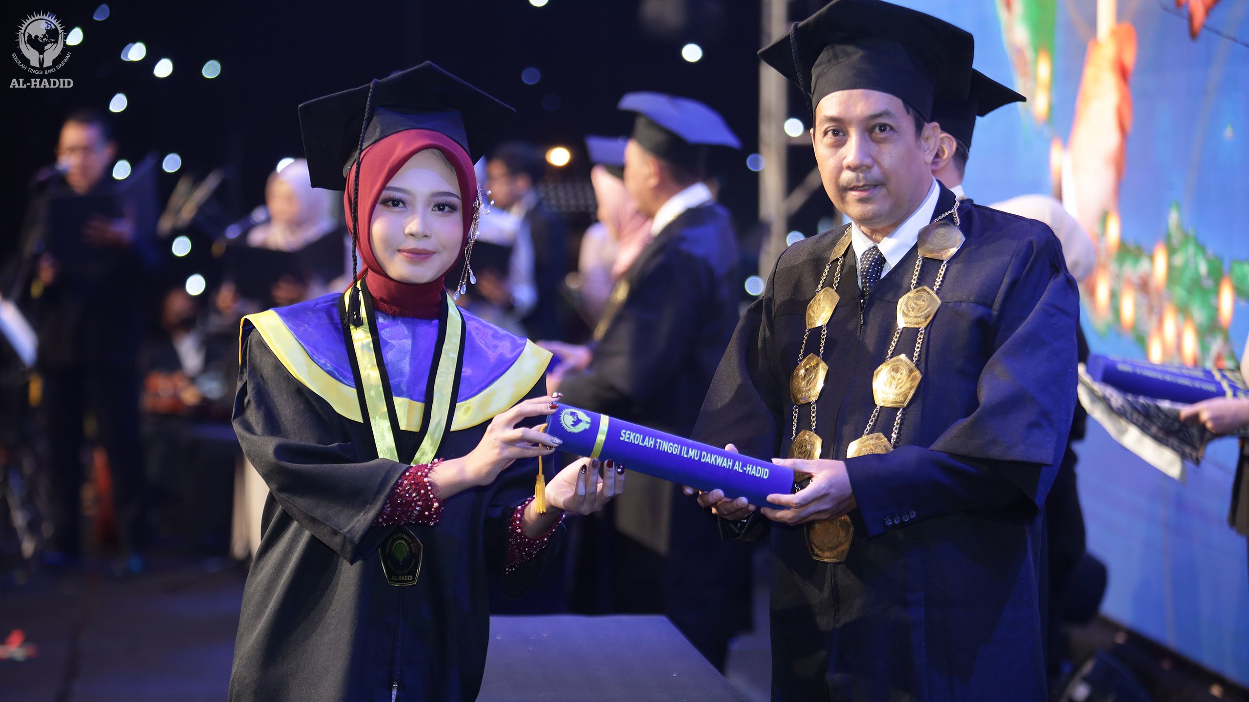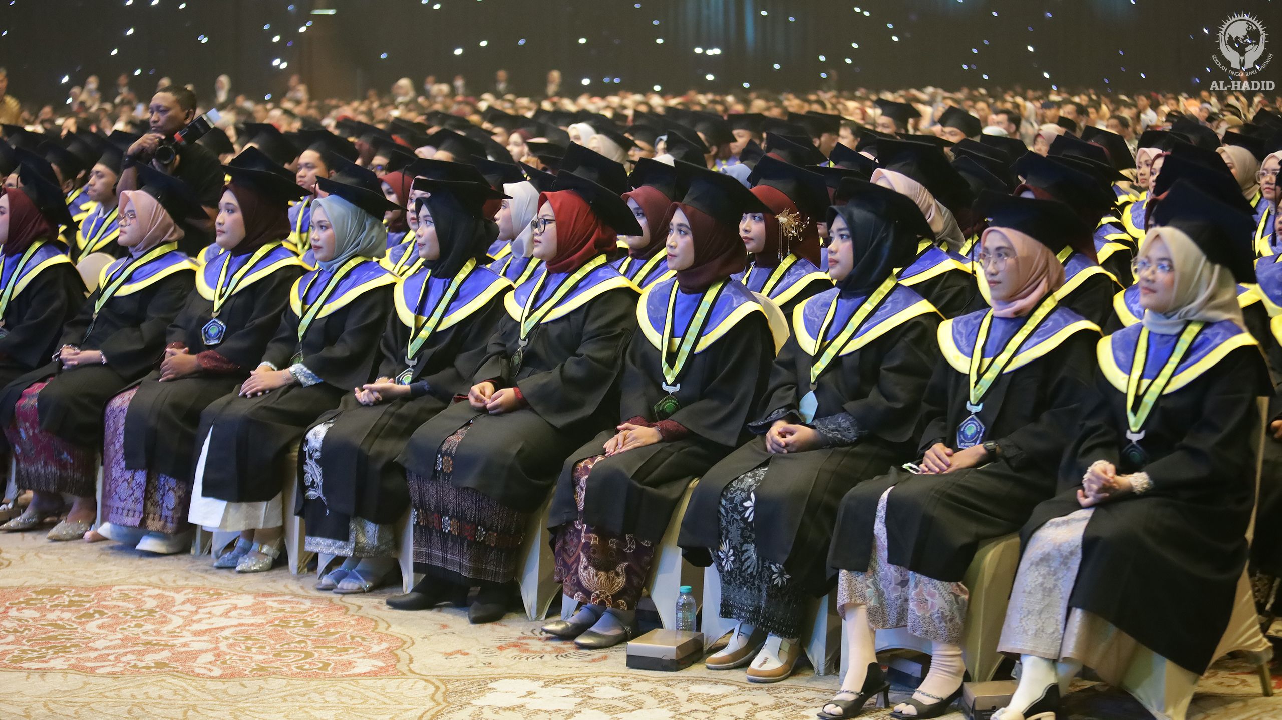 Mengikuti kegiatan wisuda STID Al-Hadid, dapat dikatakan selalu menjadi pengalaman yang berkesan dan tak terlupakan. Seperti hari itu, baru memasuki venue acara saja, para tamu undangan sudah disambut dengan dekorasi yang indah dan menawan. Kursi-kusi dengan balutan kain berwarna kuning keemasan tertata dengan rapi. Cahaya lampu hias berwarna senada dan kerlip cahaya di dinding-dinding gedung, menambah kesan kemegahan dan kemewahan itu.